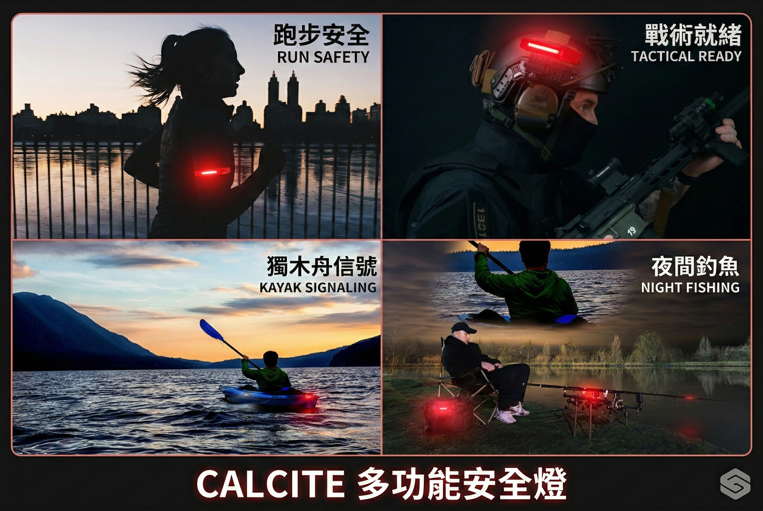StoneWave Calcite 是一款專為戶外運動(如單車、跑步、登山、戰術遊戲)設計的穿戴式安全警示燈(Be Seen Light)